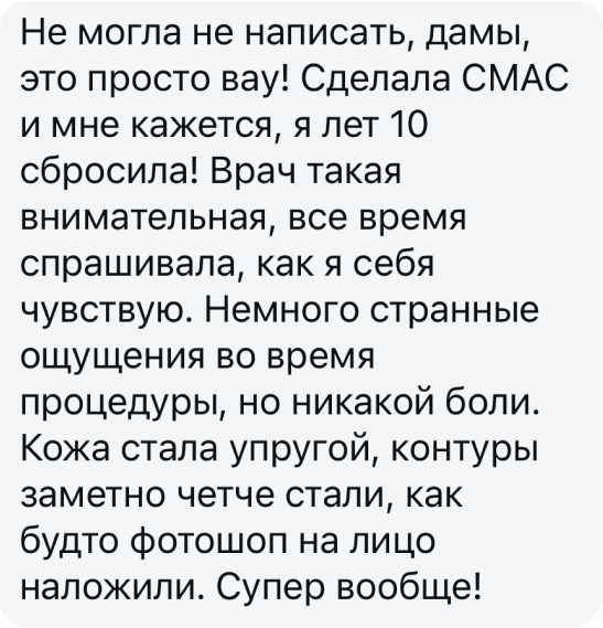 Обычно достаточно всего одной процедуры ультразвукового лифтинга лица или тела. Повторный курс SMAS-лифтинга стоит проводить раз в год.