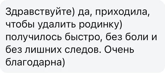 Лазерное удаление практически не травмирует кожу, поэтому риск образования рубцов минимальный. При правильном уходе на месте новообразования остается ровная и гладкая кожа.