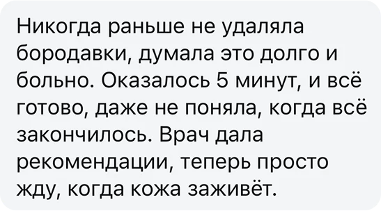 Результат: После удаления нароста врач дезинфицирует обработанную область и дает рекомендации по уходу за кожей. При необходимости назначает повторный прием для оценки результатов.